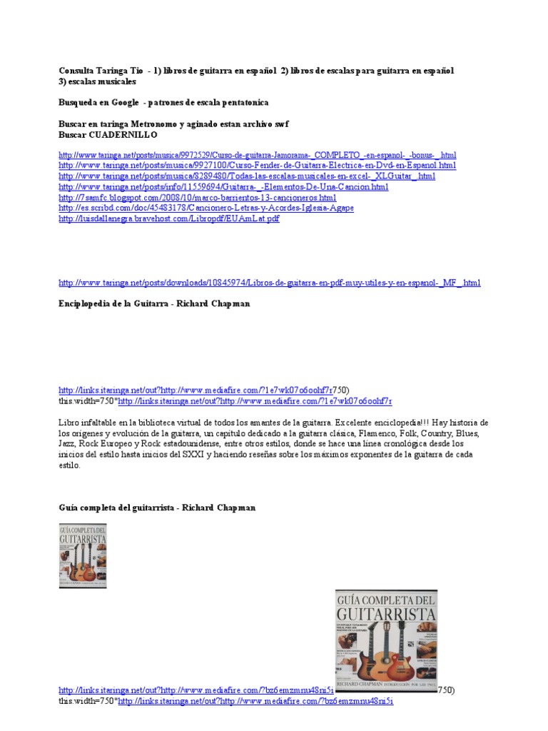 Consulta Taringa Tio - 1) libros de guitarra en espaol 2) libros de escalas para guitarra en espaol 3) escalas musicales Busqueda en Google