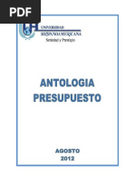 PRIMERA UNIDAD PRIMER PARCIAL PRIMER ENCUENTRO CONTENIDO UNIDAD I PRESUPUESTOS Historia de los Presupuesto.- Los fundamentos tericos y prcticos del presupuesto, como herramienta de planificacin y control, tuvieron su origen en el sector gubernamental a finales del siglo XVIII cuando se presentaban al parlamento britnico los planes de gasto del reino y se daban pautas sobre su posible ejecucin y control. Desde el punto de vista tcnico la palabra se deriva del francs antiguo bougette o bolsa. Dicha acepcin intent perfeccionarse posteriormente en el sistema ingls con el trmino butget de conocimiento comn y que recibe en nuestro idioma la denominacin de presupuesto. En 1820 Francia adopta el sistema en el sector gubernamental, y los Estados Unidos lo acogen en 1821 como elemento de control del gasto pblico y como base en la necesidad formulada por funcionarios cuya funcin era presupuestar para garantizar el eficiente funcionamiento de las actividades gubernamentales. Entre 1912 y 1925, y en especial despus de la primera guerra mundial, el sector privado not los beneficios que poda generar la utilizacin del presupuesto en materia de control de gastos. En este periodo las industrias crecen con rapidez y se piensa en el empleo de mtodos de planeacin empresarial apropiados. En la empresa privada se habla intensamente de control presupuestario, y en el sector pblico se llega incluso a aprobar una ley de presupuesto nacional. Esta innovacin genera un periodo de anlisis y entendimiento profundos de los costos, promueve la necesidad de presupuestar y programar, y fomenta el tecnicismo, el 11