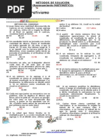 LAS PESAS DEL TENDERO 1, 2, 4 y 8 kg, respectivamente. UN PROBLEMA DE PESO Las pesas son de 1, 3, 9 y 27 Kg. Con estas pesas siempre encontraremos una combinacin. LOS MOJONES INSISTENTES Llamaremos x a la cifra de las decenas e y a la de las unidades en el primer mojn; el nmero ser pues 10x + y. En el segundo mojn las cifras estn en orden inverso, luego el nmero ser 10y + x. Es evidente que y es mayor que x, ya que el segundo nmero es mayor que el primero (puesto que el tercero tiene centenas). El nmero del tercer mojn ser 100x + y, ya que las decenas son 0, y adems x tiene que ser igual a 1, pues de lo contrario la diferencia entre el tercer mojn y el segundo sera mayor que la diferencia entre el segundo y el primero (evidentemente menor que 100, ya que son nmeros de dos cifras), y el coche no ira a velocidad constante. Tenemos, pues, (100 + y) (10y + 1) = (10y + 1) (10 + y), de donde y = 6. Por tanto los mojones llevan los nmeros 16, 61 y 106, y el coche marcha a 45 km por hora. LA VIEJECITA EN EL MERCADO Tena 59 huevos EN EL BAR El problema est en que el lenguaje comete un fallo. Cada uno paga 9 pesetas, en total 27, y dentro de esas, ya estn las dos de propina. El razonamiento correcto es: 25 de los cafs, ms 2 del bote, seran las 27 que en realidad han pagado. MARA Y JUAN Cuatro chicos y tres chicas. JUAN Y PEDRO Juan tiene 7 ovejas y Pedro tiene 5. LA COLECCIN DE MONEDAS Haba 7 monedas . LA TELA DE ARAA 29 das: Cuando una tenga cubierto medio hueco en el da 29, la otra araa tambin lo tendr, y entre las dos tendrn la ventana completa. EL LECHERO INGENIOSO Primero llena la jarra de 3 litros. Luego vierte el contenido en la jarra de 5 litros. Vuelve a llenar la jarra de 3 litros y vuelve a verter su contenido en la jarra de 5 litros que ya est medio llena. Lo que quede en la jarra de 3 litros ser un litro de leche. SI NOS FALTA LA LUZ Tres.