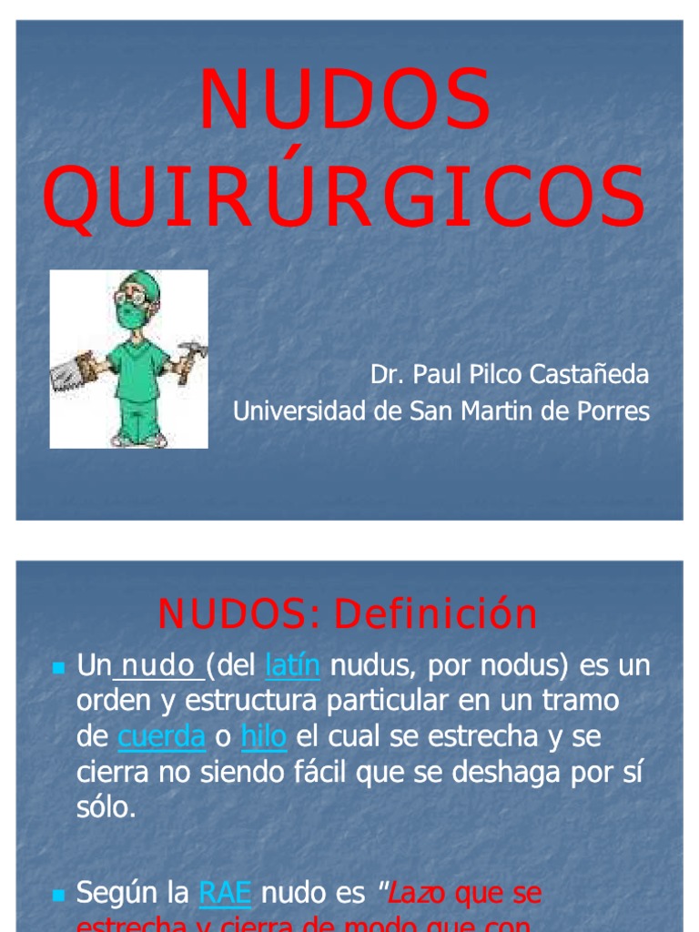 El nudo del cirujano es recomendado para atar sutura POLYSORB (ployglactin 910), sutura TICRON polyester, MONOSOF sutura de nylon, polypropylene, etc.