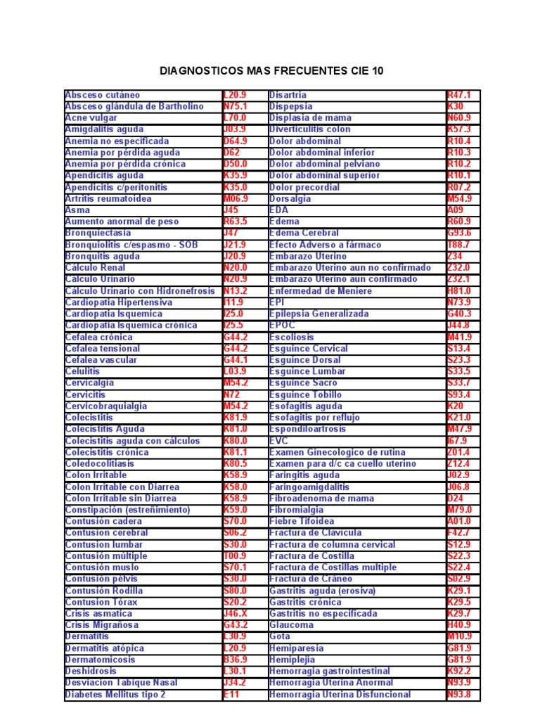 DIAGNOSTICOS MAS FRECUENTES CIE 10