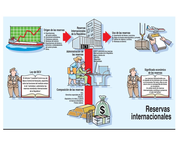 Las reservas internacionales son el respaldo de los bolvares que circulan en la economa. Por tanto, ellas no son ahorro sino la contrapartida del dinero en circulacin. Un slido monto de reservas internacionales contribuye a preservar el valor del bolvar.