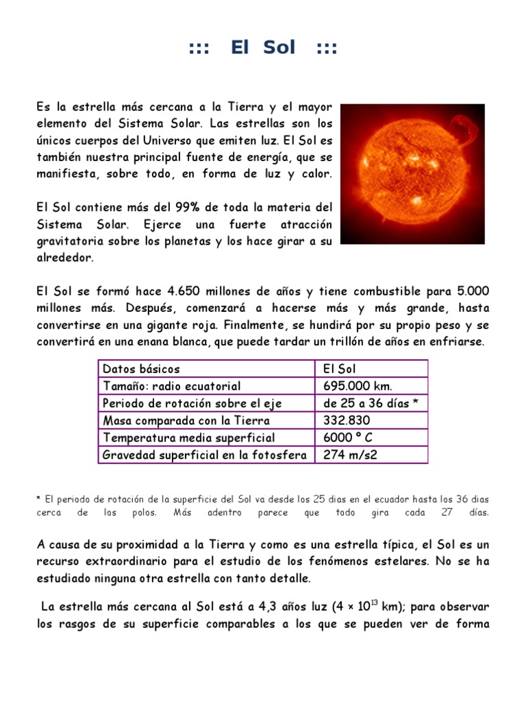 Datos básicos El Sol