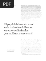 Introduccin Lo que se expone a continuacin gira alrededor de una cuestin que si bien ha sido destacada por los estudiosos de la traduccin audiovisual, todava est pendiente a mi entender, de una investigacin ms exhaustiva y completa: Se trata de la necesidad de realizar, a la hora de efectuar cualquier modalidad posible de traduccin (doblaje, subtitulacin, etc.), un anlisis ms detallado de todos los cdigos que conforman un texto audiovisual. ste es un aspecto crucial, ya que slo cuando se ha llegado a una profunda comprensin del funcionamiento e interaccin entre todos estos sistemas de signos puede llevarse a cabo con correccin, el proceso de transferencia de los cdigos lingsticos que denominamos traduccin o transferencia lingstica audiovisual.1