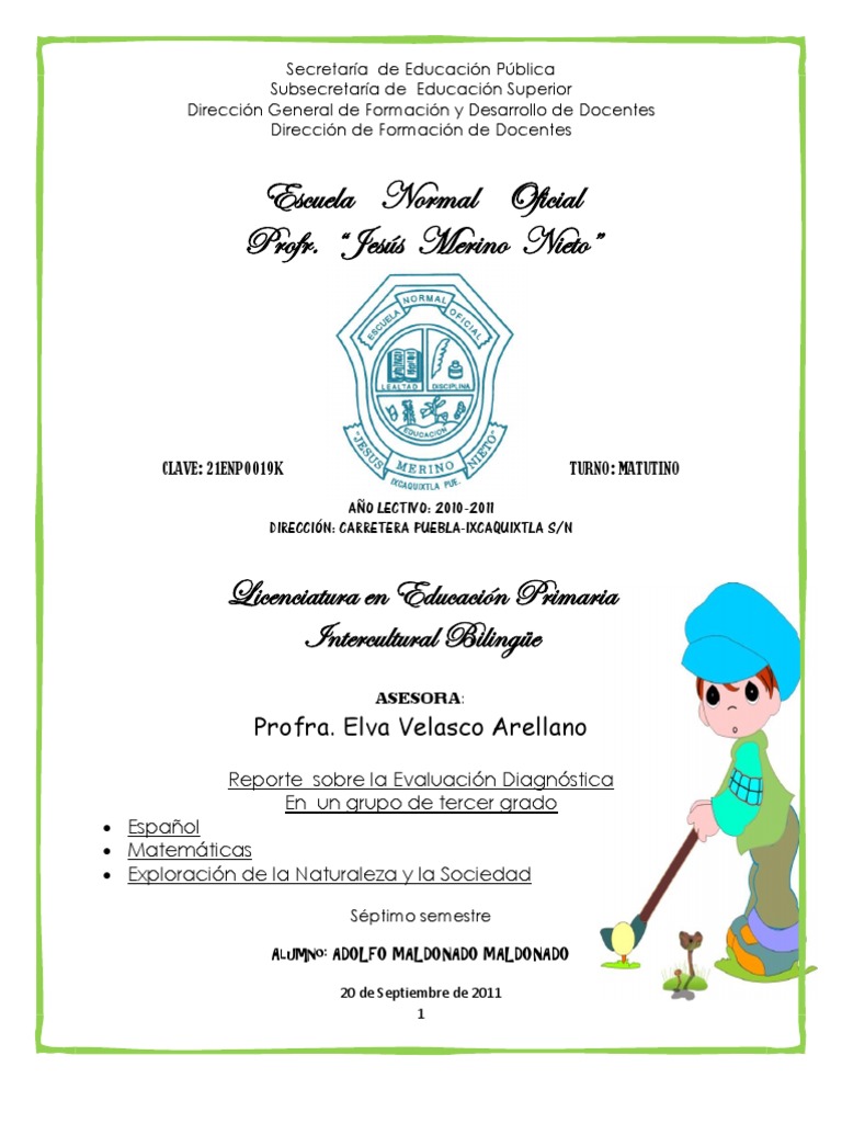 Reporte sobre la Evaluacin Diagnstica En un grupo de tercer grado Espaol Matemticas Exploracin de la Naturaleza y la Sociedad