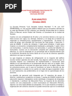 1. INTRODUCCIN La elaboracin del plan de estudios por competencias en la reforma 2009 tiene como objetivo primordial que el nio asimile lo aprendido para que pueda llevarlo a cabo en su vida cotidiana. Solucionando los problemas que se le presenten y haciendo que el aprendizaje se vuelva significativo. En el proceso de planeacin y organizacin de los aprendizajes, considero que la evaluacin es el medio fundamental para conocer el grado de alcance de los objetivos fijados, as como la eficacia, de las acciones realizadas en el proceso acadmico de los alumnos y alumnas es de suma importancia para la enseanza en el sistema educativo. La evaluacin es una exigencia esencial de control en toda institucin educativa, pero es tambin la forma en que el docente puede ir obteniendo informacin sobre el estado en que se encuentran los alumnos en relacin al contenido y a los fines promovidos por la enseanza1. El docente necesita de dicha informacin para realizar modificaciones en las actividades que se tienen planteadas, para incorporar elementos que no haba tomado originalmente en cuenta o para ofrecer ayudas adicionales a los alumnos que lo necesitan, cambiar su forma de trabajo pues al final es el trabajo reflejado en los alumnos. En este trabajo se explica a grandes rasgos el nivel de aprovechamiento que los alumnos obtuvieron a lo largo del ciclo escolar en las tres asignaturas bsicas marcadas por el plan 2009 Espaol, Matemticas y Exploracin de la Naturaleza y la Sociedad, cules de las preguntas fueron las que ms se complicaron y por qu, que preguntas fueron las ms acertadas y cuales incluso dejaron en blanco. Se realiza un anlisis sobre cada asignatura as como el promedio obtenido por el grupo y de forma individual. Cuando un proceso de evaluacin se pone en marcha, existe siempre un propsito que lo impulsa. En algunas oportunidades, las ms frecuentes, se evala para acreditar lo aprendido, y en otras para conocer y comprender el proceso que conduce a un determinado conocimiento.