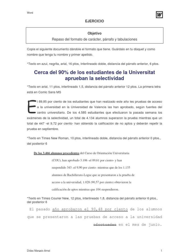 Repaso del formato de carácter, párrafo y tabulaciones