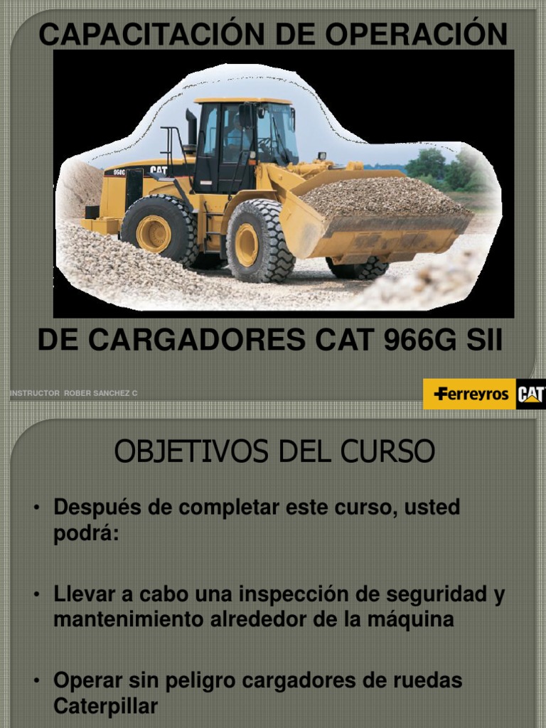Despus de completar este curso, usted podr: Llevar a cabo una inspeccin de seguridad y mantenimiento alrededor de la mquina Operar sin peligro cargadores de ruedas Caterpillar