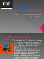 Aplicacin Las tuberas que conducen materiales combustibles, txicos, corrosivos custicos o cidos, etc., localizadas en reas de proceso o en zonas pobladas, requieren una medicin peridica de su espesor para evitar fugas, siempre que existan razones para suponer que hay desgaste por la accin erosiva o corrosiva del fluido conducido o del medio en que se encuentran localizadas las tuberas. Para garantizar que las tuberas adelgazadas por el desgaste no sufran fallas originadas por esfuerzos mecnicos, la experiencia ha sealado ciertos valores mnimos del espesor de la pared de las tuberas, en funcin del material que las forma y del dimetro de ellas. Cuando se considere conveniente o necesario, debern calcularse los esfuerzos reales a que se encuentra o puede encontrarse sometida la tubera; para establecer, en consecuencia, el lmite de retiro de cada pieza o parte de ella.