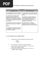 Caractersticas: a) Solubilidad: al ser sustancias no polares deben disolverse en solventes orgnicos no polares, son insolubles en la razn por lo cual se dice que son hidrofbicos. b) Densidad: Su valor aproximado es de 0.7 g/ml, es menos denso que el agua. c) Punto de ebullicin: Aumenta al aumentar el nmero de carbonos (masa molecular) d) Punto de fusin: Aumenta al aumentar la masa molecular, porque no tiene forma regular. Propiedades Qumicas