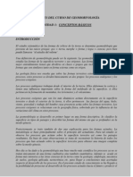 la estratificacin de la roca madre. En la morfologa se presentan crestas agudas y laderas empinadas no muy altas. - Los esquistos tienen clara orientacin, buena foliacin, tono gris uniforme (de medio a oscuro), drenaje variable, segn el clima, pero controlado por la foliacin, morfologa con planos de esquistosidad planos y crcavas paralelas. - Las cuarcitas dan tonos claros, crestas empinadas, drenajes colectores, poco drenaje secundario, crestas filudas, fracturas controlando el drenaje, los contactos con otras rocas tienen fuerte contraste y la vegetacin es escasa, est alineada y es de tipo arbustivo. Los gneises tienen aspecto masivo y muestran fracturas bien desarrolladas (fallas) que controlan el drenaje. Las lomas son alargadas con cimas suaves pero altas y pendientes. Su tono es claro a semioscuro y la textura rugosa. El drenaje es dendrtico a rectangular con textura media a gruesa. Las lomas desprovistas de capa vegetal desarrollan poco suelo y poca vegetacin dando posibilidad a la observacin de los diques que las cortan. 20.2.6 masa Claves diagnsticas para caracterizar movimientos en