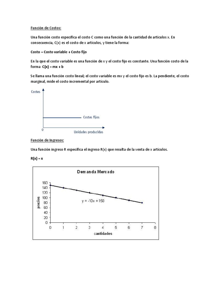 Funcin de Costos: Una funcin costo especifica el costo C como una funcin de la cantidad de artculos x.