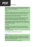 4) Procedimientos a seguir para desarrollar los laboratorios Pasos a seguir: a) Leer la base terica del ejercicio , ayudarse del manual o de informacin que encuentre en intenet b) Ejecutar las demos planteadas c) Verificar que el resultado sea igual al planteado d) Verificar que se cumplan los objetivos Mejoras: Para sugerencias y mejoras de los procedimientos colgar su respuesta o publicacin en nuestro blog y/o wikispace: [Link] [Link] Cdigos Fuentes y Aplicaciones: estarn a su disposicin en dicho blog. 5) LABORATORIOS Laboratorio 01 (Lab Bsico): Creando y ejecutando un procedimiento almacenado Un procedimiento es un programa el cual es almacenado fsicamente en una base de datos. Su implementacin vara de un gestor de bases de datos a otro. La ventaja de un procedimiento almacenado es que al ser ejecutado, en respuesta a una peticin de usuario, es ejecutado directamente en el motor de bases de datos, el cual usualmente corre en un servidor separado. Como tal, posee acceso directo a los datos que necesita manipular y slo necesita enviar sus resultados de regreso al usuario, deshacindose de la sobrecarga resultante de comunicar grandes cantidades de datos salientes y entrantes Trabajaremos con las tablas Clientes y Empleado