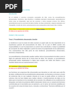 6) CONCLUSIONES Con los laboratorios antes realizados ,se ha podido notar la manera de encapsular sentencias SQL para operaciones frecuentes en sistemas de informacin y su utilidad que ello conlleva. Si bien en estos laboratorios no se ha podido mostrar una comparativa con respecto a tiempos de ejecucin, pues con esta clase de consultas y la cantidad de datos los tiempos de respuestas son cortos. Se deja en claro que si adecuamos esto al tiempo y frecuencia de uso de dichas sentencias, adems del trfico y cantidad de usuarios, usar un procedimiento almacenado resulta en un cdigo ms limpio, rapidez y eficacia en resultados Esto es especialmente til cuando es imposible mediante una sentencia SQL el rescatar toda la informacin que el usuario requiere, como por ejemplo en una factura del servicio telefnico que est sujeta a promociones, tipos de cliente, tipos de llamadas, localidades, horarios pico y no pico etc, para lo cual es necesario consultar varias tablas. La factura del recibo telefnico puede llegar a su realizacin mediante dos diferentes caminos, el caso A, en el cual la aplicacin cliente solicitara al DBMS cada consulta que considere necesaria para formar la factura o el caso B en el que en el DBMS se almacenara la rutina para que se ejecutarn todas las sentencias SQL necesarias y enviara como respuesta una estructura de informacin en la cual la aplicacin cliente tendra todas los datos necesarios para imprimir dicha factura. Es necesario realizar una diferencia en el uso de los procedimientos almacenados y las UDF (funciones definidas por el usuario) ya que los dos actan de manera muy parecida, esta diferencia consiste en que los procedimientos almacenados aceptan una entrada mltiple y mltiples parmetros de salida, mientras que una UDF al igual que el procedimiento acepta una entrada mltiple pero solamente un nico valor de salida, son fciles de diferenciar ya que las UDF son compiladas en el servidor y se incrustan principalmente en sentencias SQL similares a sum(),count() etc.. Mientras que los procedimientos no es necesario compilarlos, y se utilizan sobretodo sentencias SQL. Los estndares se hacen presentes en este tema, y es lgico, ya que con ellos se logra la unificacin, convencionalidad y posibilidad de utilizacin de diferentes bases de datos con las mismas sentencias SQL al menos en los procedimientos almacenados, los DBMS mas robustos como ORACLE, SQL SERVER y MYSQL se encuentran regidos bajo el estndar SQL:2003, aunque con algunas excepciones cada uno de ellos. 7) REFERENCIAS 1. 2. 3. [Link] [Link] [Link]