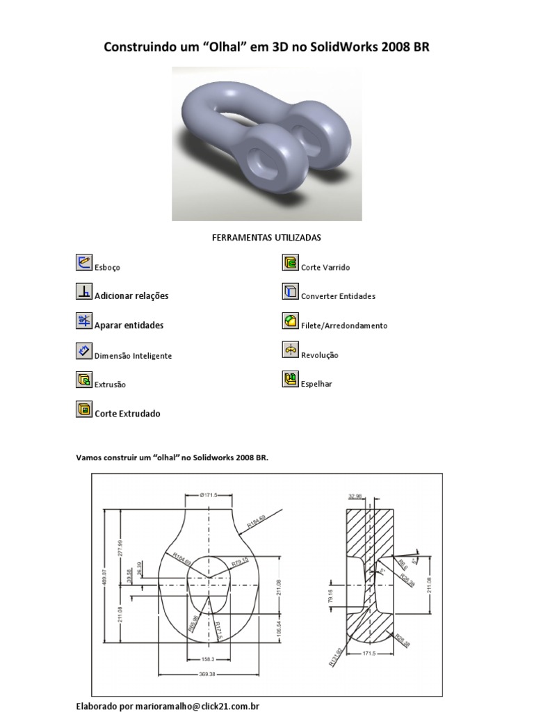 Primeiro temos que escolher um plano que facilite sua viso e construo, no meu caso eu escolhi o plando SUPERIOR, por achar uma melhor costruo do modelo. A partir da, comeamos a desenhar a parte da cabea do olhal conforme indicado no desenho 2d de referncia, como percebi que o desenho e simtrico em toda sua forma ento vou construir ele de modo que facilite todo o meu trabalho. Usaremos a ferramenta ESBOO