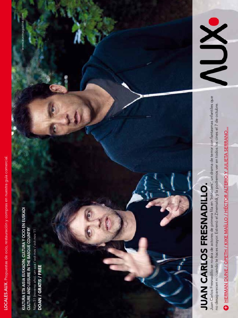 26-28 30-31 42-43 48-49 Quines hacemos AUX.magazine? La coordinacin es de Germn Castaeda y de Leire Layana. La gestin de contenidos, de Silvia Andrs. El diseo ha sido ideado por Juanma Galvn, quien tambin hace la maquetacin. En la redaccin, Roberto Gonzlez y Naiara Alcobre. Creacin y gestin de www.auxmagazine.com, de uvedoble studio. Las fotos de los locales de la gua comercial son de Juancar Hernndez en Bizkaia, Arrate Remn en lava y lex Iturralde y Sophie Hindennach en Gipuzkoa. En este nmero han trabajado Koldo Gutirrez, Abel Amutxategi (Nora, bienvenida! Zorionak!), Full Gonzlez, Stuart MacDonald, Dani Carrero, Miguel ngel Gaeca, Alfonso Rivera, Amanda Osakar, Adrin Blanco, Laura Alonso Izaguirre, David Tijero Osorio, Ricardo Cerd Aldama, Jara Calvo, Javier Muoz, Goio Borge, Eduardo Noeda, Begoa Mena Martnez, Carlos Zahumenzky y Rafa lvarez. La distribucin la ha realizado Auxiliarte Factora. Las traducciones a ingls y euskera las han hecho Abel Amutxategi y Germn Castaeda. La impresin se ha realizado en Gr cas Irudi (Vitoria-Gasteiz). Si quieres contactar con nosotros, puedes visitarnos en Cortes, 8 bajo (48003, Bilbao); llamarnos al 944 792 846 o enviarnos un mail a info@auxmagazine.com. No nos hacemos responsables de las opiniones de nuestros colaboradores, a los que agradecemos su trabajo. La tirada de AUX.magazine es de 25.000 ejemplares, distribuidos en toda Euskadi, y puntos de Cantabria. AUX. es una marca registrada. Depsito legal: BI-997-03 / ISSN: 1696-5817