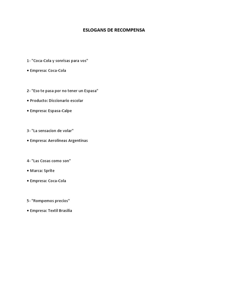 ESLOGANS DE RECOMPENSA