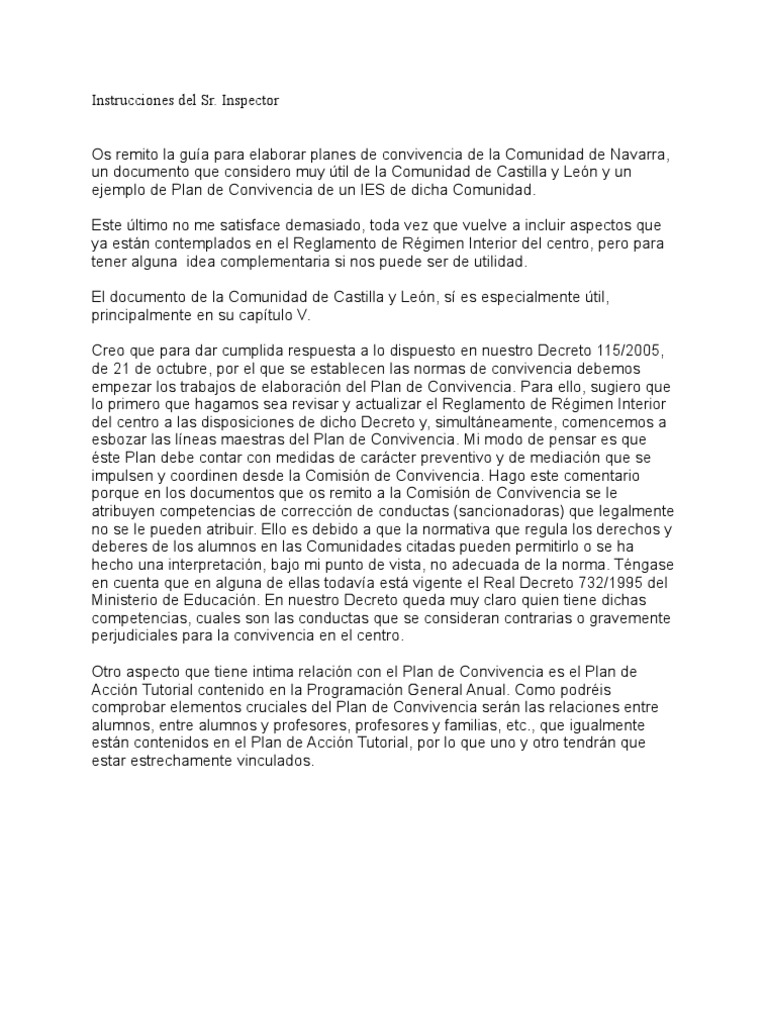 empezar los trabajos de elaboración del Plan de Convivencia. Para ello, sugiero que