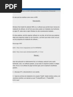 7. Q: Cmo puedo cambiar la instalacin por categora? R: Es una opcin en el asistente de opciones. 8. Q: Cmo puedo aadir un espacio libre despus de una aplicacin? R: En la definicin del programa [Link] agregar un <br /> despus de que el nombre del programa. Ejemplo: prog [pn] = ["Un ejemplo de programa <br> '] No agregue ms de un salto de lnea - la prestacin se recibe en mal estado.