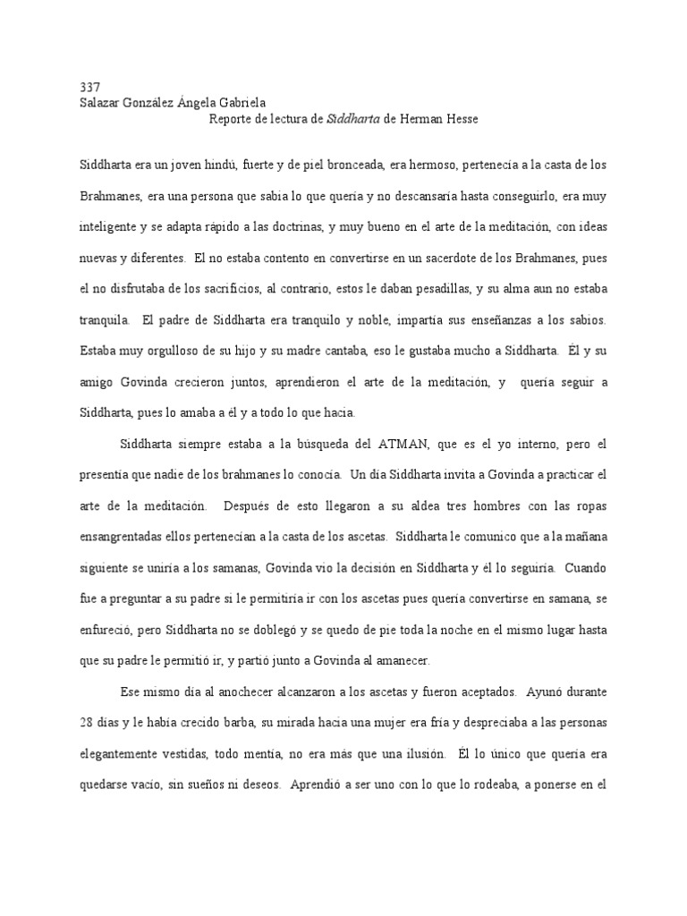 337 Salazar Gonzlez ngela Gabriela Reporte de lectura de Siddharta de Herman Hesse Siddharta era un joven hind, fuerte