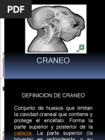 El crneo es una estructura muy compleja para radiografiar, debido a la distribucin de sus huesos. La cabeza sea esta formada por veintids huesos y se la puede dividir en dos grandes regiones: Crneo: que a su vez se divide en BASE y CALOTA Cara: que a su vez se divide en CARA SUPERIOR y CARA INFERIOR. el hueso propio de la nariz. el unguis los cornetes el hueso malar maxilar superior Y la cara Inferior esta conformada, por el maxilar inferior.