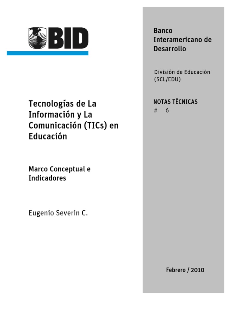 Tecnologas de La Informacin y La Comunicacin (TICs) en Educacin Marco Conceptual e Indicadores Eugenio Severin C. Banco Interamericano de Desarrollo Divisin de Educacin
