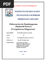 4.3.1. ELABORACION DE MARINADO DE TRUCHA ARCO IRIS Las operaciones que involucran ste proceso se describen a continuacin: 1. Recepcin - Pesado El pescado debe ser tratado con mucha rapidez e higiene para evitar su deterioro. El transporte debe realizarse en carros refrigerados o con la adicin de hielo, empleando bandejas de plstico apilables e insertables de 20 kilos de capacidad. El estado de frescura de la trucha se determin: Por observacin de las agallas, que deben presentar un color rojizo y no un verdoso ni un olor con principio de putrefaccin.