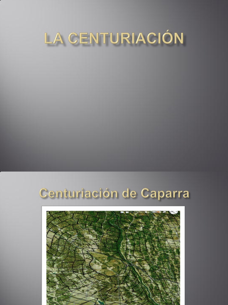 El Plan Badajoz se refiere al plan de transformacin y colonizacin aprobado por el gobierno del general Franco en 1952 y destinado a dotar a la agricultura pacense de un sistema mejorado de electrificacion, riego, proceso de fabricacin y transformacin y de comercializacin de productos agrarios, teniendo como principal objetivo mejorar la produccin y renta agraria. En la centuriacion se tomaba como referencia para construir la ciudad las principales vas, el cardo y el decumanus y se prolongaban de forma imaginaria y se creaban lineas paralelas y se formaban una especie de damero de parcelas rectangulares. La centuriacion y el plan Badajoz se asemejan en que el plan Badajoz al igual que la centuriacion tiene su origen en un cardo del cual se ha ido expandiendo el territorio creando parcelas para colonizarlas semejantes a los campamentos romanos, ese cardo era el ro Guadiana.