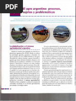 En la Argentina los paisajes rurales distan mucho de ser naturales, pues han sido profundamente transformados por el trabajo humano, especialmente aquellas tierras dedicadas a la produccin agropecuaria. Actualmente los productores rurales que producen para el mercado intentan distintas estrategias para lograr la mxima ganancia capitalista combinada con el mnimo riesgo. En el caso de las grandes empresas, las estrategias de diversificacin productiva, la especulacin con los precios de venta y la ampliacin de inversiones extra rurales. Es cada vez ms estrecho el encadenamiento con el sector secundario o urbano-industrial (industrias procesadoras de materias primas, fabricantes de maquinarias, industria agroqumica, industria alimenticia) Adems, se articulan los procesos de comercializacin, distribucin y las estrategias de financiamiento y gestin empresarial. En la regin pampeana como en otras, el espacio rural se diversifica de acuerdo a tres factores: a. Capital Reconversin tecnolgica Concentracin de la tierra La propiedad de gran escala en manos de empresas articuladas ligadas a los circuitos exportadores y el comercio exterior. Su participacin en la economa global es fruto de la modernizacin y la reconversin tecnolgica que permite el aumento de la produccin y la disminucin de los costos. Articulan las distintas fases de la produccin: desde la etapa agraria hasta la comercial y financiera. Mano de obra asalariada y calificada segn el caso. Propietarios o arriendan grandes extensiones que provocan un desajustes en el mercado inmobiliario de tierras por la concentracin de este recurso y su revalorizacin La creciente exclusin social de pequeos y medianos productores que no participan de la reconversin tecnolgica. Escasa disponibilidad de cantidad de recursos (tierra, agua) Escaso capital Bajo nivel de tecnificacin (maquinarias e insumos)