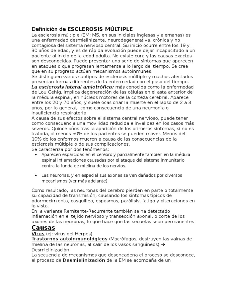desarrollo de la esclerosis múltiple en la vida del adulto. La teoría se