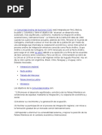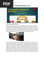La Comunidad Andina (CAN) es un Organismo Regional de cuatro pases que tienen un objetivo comn: alcanzar un desarrollo integral, ms equilibrado y autnomo, mediante la integracin andina, sudamericana y latinoamericana. El proceso andino de integracin se inici con la suscripcin del Acuerdo de Cartagena el 26 de mayo de 1969. Est constituida por Bolivia, Colombia, Ecuador y Per, adems de los rganos e instituciones del Sistema Andino de Integracin (SAI). Antes de 1996, era conocida como el Pacto Andino o Grupo Andino. Venezuela fue miembro pleno hasta el 2006. Chile originalmente fue miembro entre 1969-1976, pero se retir durante el rgimen militar de Augusto Pinochet debido a incompatibilidades entre la poltica econmica de ese pas y las polticas de integracin de la CAN. Este pas es miembro asociado desde el 20 de septiembre de 2006, pero ello no supone el reingreso a la CAN. Ubicados en Amrica del Sur, los cuatro pases andinos agrupan a casi 100 millones de habitantes en una superficie de 3.798.000 kilmetros cuadrados, cuyo Producto Interno Bruto se estima ascendera en el 2007 a 280.392 millones de dlares.