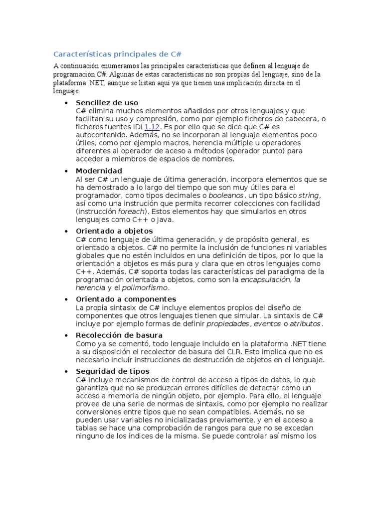 programación C#. Algunas de estas características no son propias del lenguaje, sino de la