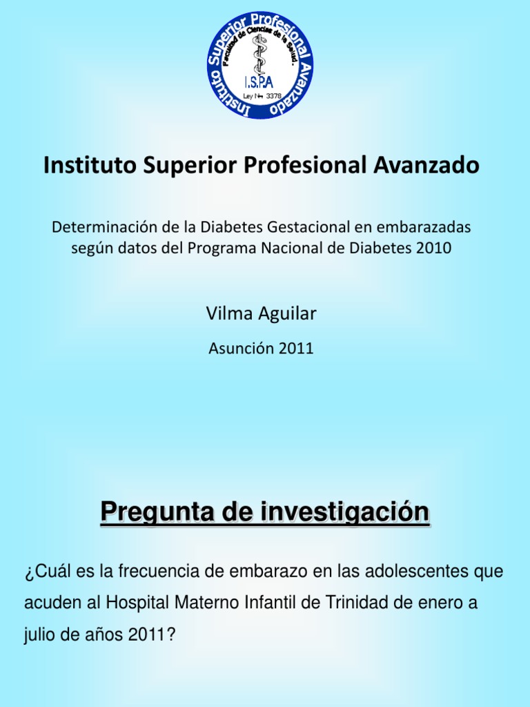 El presente estudio pretende conocer la problemtica de las adolescentes que han estado embarazadas y que son atendidas en el Hospital Materno Infantil de Trinidad de Asuncin, Paraguay en el ao 2011. El embarazo adolescente es considerado como un problema social, el cual ha sido analizado desde muchas perspectivas sin llegar al fondo de la situacin, sabiendo la morbilidad y mortalidad materno infantil genera un impacto Psicosocial en todos los pases. Los adolescentes llegan a ser frtiles aproximadamente 4 5 aos antes de ser emocionalmente maduros y muchos se inician sexualmente antes de los 18 aos, y antes de contraer matrimonio. El inicio de la actividad sexual sin una adecuada educacin sexual y sin los servicios de apoyo de orientacin y salud adecuados para este grupo poblacional, propicia comportamientos de riesgo que pueden acarrear embarazos no deseados o no planificados.