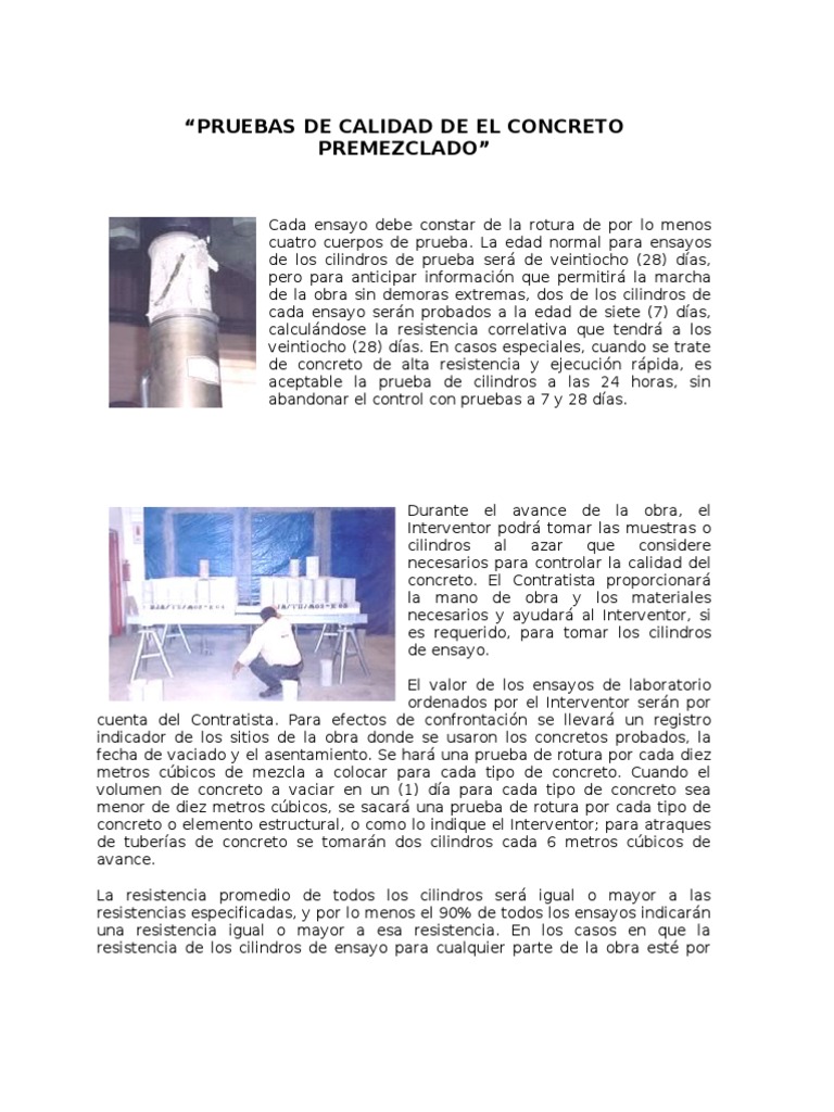resistencia de los cilindros de ensayo para cualquier parte de la obra esté por
