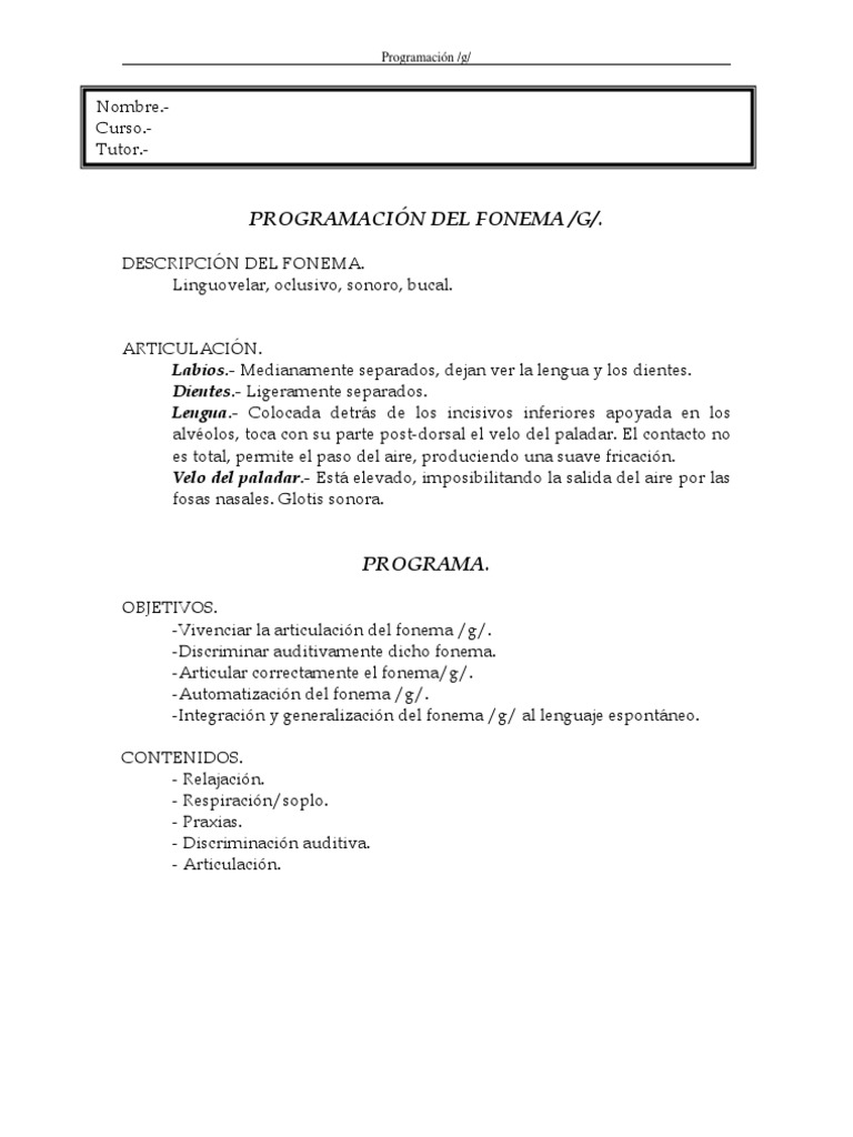 PROGRAMACIN DEL FONEMA /G/.