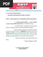 Abancay, OFICIO Nro. 1643- 2011- ME-GR-A/DREA-UGEL.AB. Seor : Mag. HUMBERTO COLLADO ROMN CIUDAD.Asunto Ref. : NOMBRA JURADO CALIFICADOR : *Plan Operativo Anual *Resolucin Ministerial N 348-2010-ED ======================================================== Es grato dirigirme a Usted para expresarle mi cordial saludo y comunicarle que, la Unidad de Gestin Educativa Local de Abancay, tiene previsto llevar a cabo el VIII Concurso Nacional de Redaccin 2011 Machupicchu: Patrimonio Cultural de la Humanidad, en su II Etapa; por lo que, mi despacho conocedor de su alto espritu de contribucin con las actividades educativas de nuestra Regin, le NOMBRA JURADO CALIFICADOR, para acompaarnos el da jueves 11 de agosto del ao en curso a horas 9:00 a.m. en el local de la UGEL- Abancay. Sin otro particular, aprovecho de la ocasin para expresarle sentimientos de estima y deferencia personal.