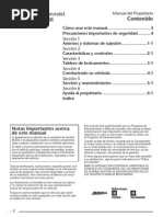 Cmo usar este manual .................................. 3 Precauciones importantes de seguridad ......... 4 Seccin 1 Asientos y sistemas de sujecin .................... 1-1 Seccin 2 Caractersticas y controles ........................... 2-1 Seccin 3 Tablero de instrumentos .............................. 3-1 Seccin 4 Conduciendo su vehculo ............................. 4-1 Seccin 5 Servicio y mantenimiento ............................ 5-1 Seccin 6 Ayuda al propietario .................................... 6-1 Indice