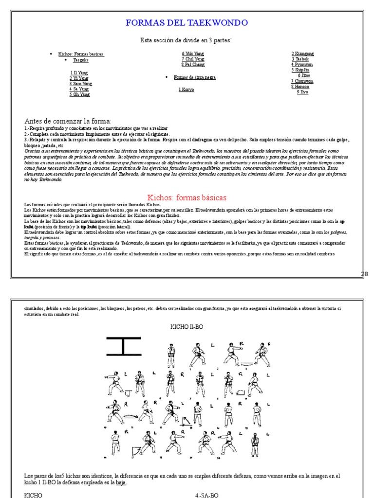 elementos son esenciales para la ejecución del Taekwodo, de manera que los ejercicios formales constituyen los cimientos del arte. Por eso se dice que sin formas