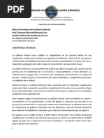 Contribuye eficazmente a evitar las actividades rutinarias y la inercia burocrtica que generalmente se desarrollan en las grandes empresas. Favorece la proteccin de los intereses y bienes de la empresa frente a terceros. (s/p) Manual de Auditora Interna Como es de saber, los manuales agrupan ciertos lineamientos de aplicacin especfica a seguir para desarrollar determinados tipos de actividades, dentro de estos manuales se encuentran los manuales de auditora interna segn la autora Morell (2005), su definicin viene dada de la siguiente manera: consisten en agrupar lineamientos, instrucciones de aplicacin especfica a determinados tipos de actividad, o sea a la Auditora Interna en forma particular (s/p). De acuerdo a este concepto, el manual de auditora interna concentra en un solo documento y de forma sistmica todas las actividades a desarrollar por estos auditores, de manera que contribuya al logro de los objetivos estratgicos de la organizacin; normalmente el contenido del manual reflejar la actitud del jefe de Auditora Interna. An cuando puedan existir declaraciones de poltica y procedimientos, boletines de la empresa y otras publicaciones con informacin relacionadas con la auditora, estas se incorporan como una parte a tener en cuenta en el manual de Auditora Interna. Generalmente este expondr, los objetivos de la auditora, las normas de realizacin y el procedimiento de registro del tiempo, preparacin del informe y otros asuntos de mbito general. Ventajas del Manual de Auditora Interna El uso del manual de auditora interna posee ciertas ventajas, segn Morell (ob. Cita), entre las ventajas se encuentran: Especifica las tareas mnimas de auditora a realizar. Ayuda a los miembros del personal a dar respuestas a preguntas rutinarias. Ayuda a la eficaz distribucin del trabajo. Es til como un control del progreso del trabajo.
