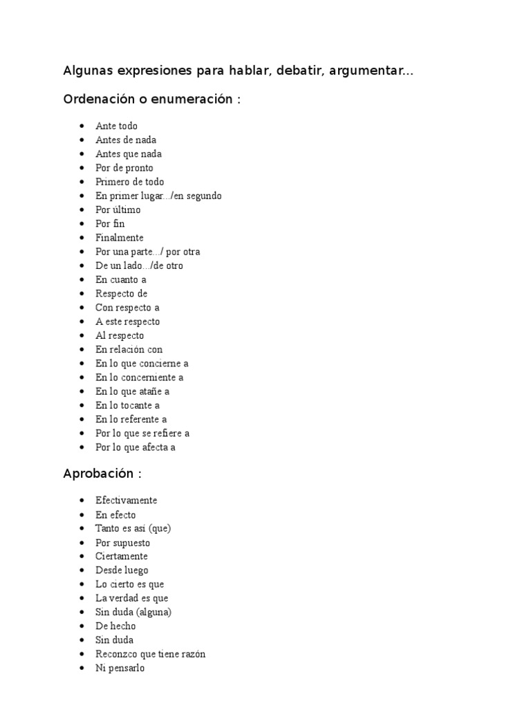 Algunas expresiones para hablar, debatir, argumentar...