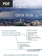 Cuadro 9. Resumen Sinptico de lar Regin Pacfico Central (PC), por subregin Subregin Lluvia Media Anual (mm) 3122 3689 [Link] Media Anual ( C) > 30 30 [Link] Media Anual ( C) 18 a 23 22 [Link] Anual ( C) 28 26 Promedio de das con lluvia 140 163 148 Duracin del Perodo seco (meses) 3 2 3