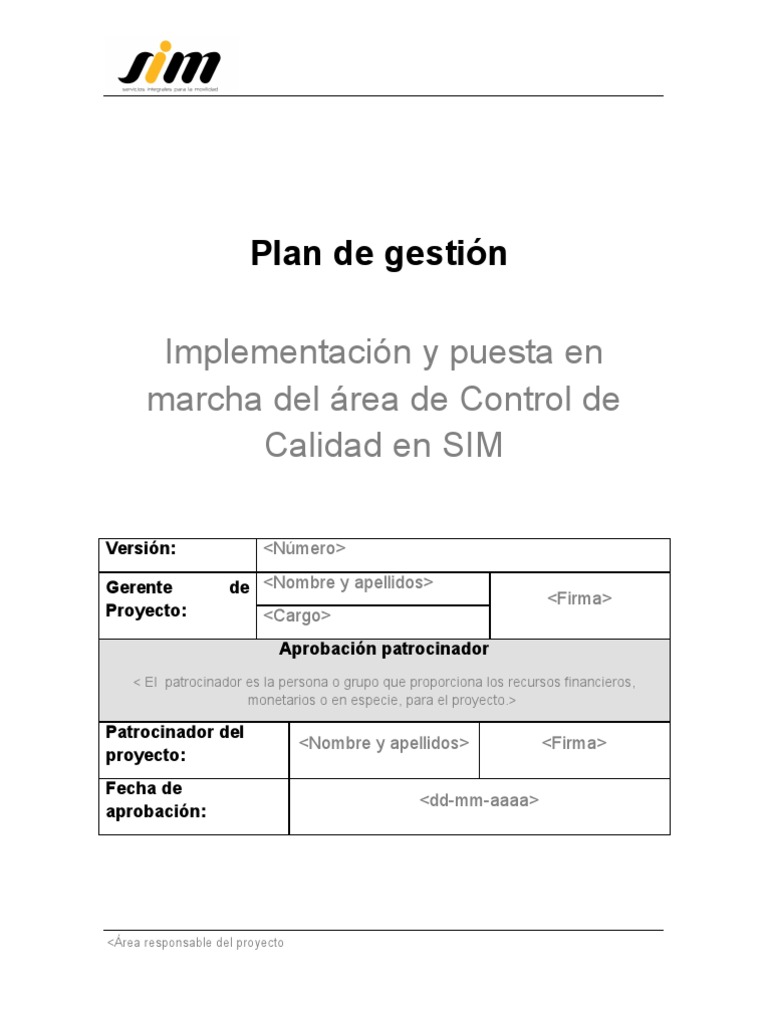 Plan de gestin Implementacin y puesta en marcha del rea de Control de Calidad en SIM