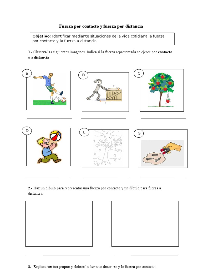 3.- Explica con tus propias palabras la fuerza a distancia y la fuerza por contacto.