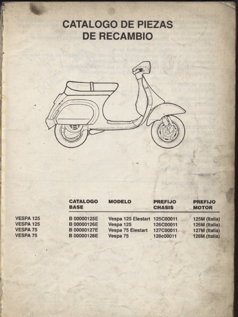 CONMUT. DE LLAVE CONT. CONMUT DE LLAVE COMPL GUERDABARROS DELANT CU8REDIRECCION PALANCA MANDa GRIFO PASACABLES 06, 5XD15,5 ESP ARAND, PLA 3,8XO,5X9 ARAND, PLA, 3,8XO,5X9 PUERTA IlDA. C, p, F , LETRERO GRIFO GASOLINA EMBELLECEDOR RUEDA ALFOM8RILLA DCHA. ALFOM8RILLA CENTRAL DISTANCIAL CILINDRO BLOCAJE OIR, GANCHO DE CIERRE PLACA FIJ. CERRADURA MUELLE CERRADURA CHASIS [Link] CAsaUILLO CILINORO CERRAD. CON LLAVE BORDE ESCUDO PROTECCION TRAS. CHASIS POMO MALETA CON PUERTA PUERTA DE LA MAlETA 81SAGRA DCHA, MALETA) BISAGRA IZOA MAlETA) TAPA RUEDA REPUESTO LETRERO VESPA LETRERO VESPA 125 TORNILLO MUELLE MUELLE TORNILLO MUELLE PLACA PUENTE ENGANCHE CERRAD, TORN. AUTORROSCANTE TORNILLO TRANSMISION GAS COMPLETA PROYECTOR COMPLETO TORNILLO DISTANCIAL MANGUITO GAS COMPL. LEVA MANDO ESTARTER PALANCA MANDO FRENO PALANCA EMBRAGUE TRANSMISION CAMBia CABLE TRANS CAMBIO LEVA MANDO CAMBIO T. MANDO CAMBIO PLACA ELASTICA PERNO FUNOA BASE FUNDA BASE PLACA [Link], CERRAD. PUNO GAS Y CAMBIO PUNO GAS Y CAMBIO TRANSMIS. COMPL. FRENO DEL. CAJA SUJ. CERRADURA CARENDO SILLIN PARTE INF. MANILLAR TAPA MANILLAR PARTESUPERIOR MANILLAR PULSADOR MANILLA FUNDA PEDAL TUBO DIRECCION CON BRAZO TAPON TAMBOR TAPON TAMBOR TAPA DEL BRAZO aUITA8ARROS G,INSTRUMENTOS TRANSMISION CTA KMS. COMP,
