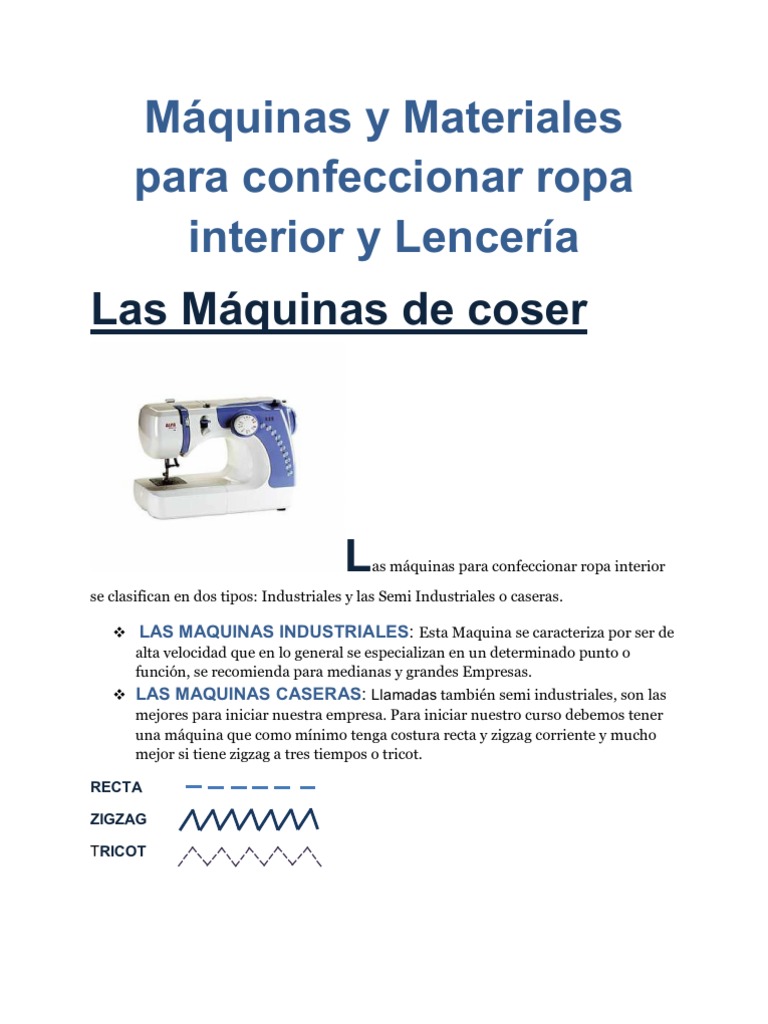 Mquinas y Materiales para confeccionar ropa interior y Lencera Las Mquinas de coser
