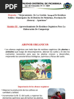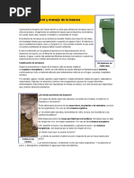 Con la basura orgnica, como las sobras de comida, la hojarasca de las plantas y el estircol, se puede hacer abono natural. T sabes que la tierra necesita abonarse para que los cultivos crezcan mejor. Por qu? Bueno, porque las plantas aprovechan lo que hay en la tierra y la tierra se cansa, se agota. Por eso es bueno cuidarla, echndole abono. Para hacer abono natural se necesita basura orgnica, basura que sale de los seres vivos y adems, que se pudra rpidamente.