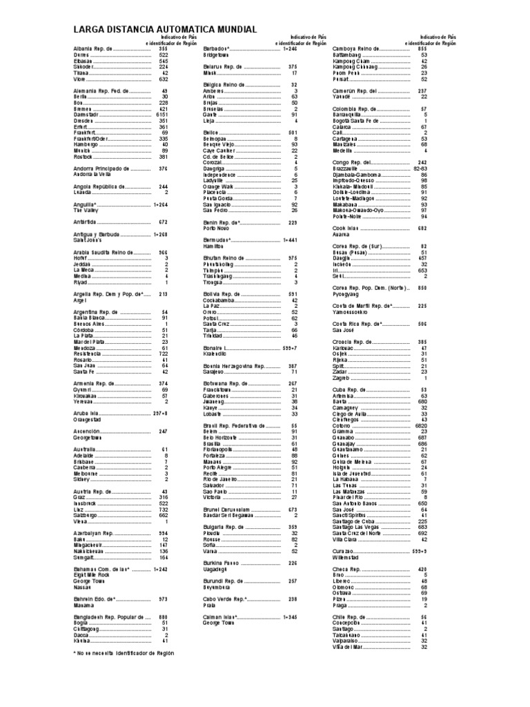 Albania Rep. de .......................... 355 Barbados* ................................... 1+246 Camboya Reino de..................... 855