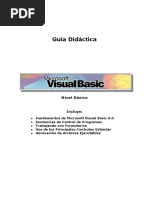 isual Basic es la versin del lenguaje de programacin BASIC, orientado al sistema operativo Windows con todas sus caractersticas (manejo de ventanas y de controles, iconos, grficos, funciones de la API, etc.). El lenguaje de programacin BASIC es uno de los ms sencillos de aprender y por tanto, Visual Basic, es la mejor herramienta para aquellos que quieran iniciarse en la programacin, ya que con unas pocas lneas de cdigo pueden observarse ya los resultados. Visual Basic es una forma de programacin basada en objetos u orientada al evento. Por qu esto? Al ser Windows un entorno multitarea, varias aplicaciones pueden ejecutarse a la vez (esta es una de las diferencias entre este sistema operativo y otros como MS-DOS); entonces las aplicaciones permanecen a la espera de acciones de parte del usuario, de parte de s mismas o del sistema operativo para ejecutar una parte de su cdigo y volver al estado de espera. Estas acciones se denominan eventos y el cdigo que se ejecuta son funciones y mtodos, todos estos se encuentran dentro de unas entidades llamadas Objetos (que se vern en el siguiente captulo). Con Visual Basic se pueden crear aplicaciones (*.exe), libreras dinmicas (*.dll), controles ActiveX (*.ocx) entre otras cosas. Contiene algunos complementos para utilizar dentro del entorno de trabajo para gestionar bases de datos, crear archivos de recursos (*.res), utilizar la API de Windows, crear clases, etc. Posee muy buenas herramientas de depuracin para encontrar errores (bugs) y corregirlos, para ejecutar el programa de forma controlada y verificar los valores de variables, detener el flujo en un momento dado y ms. Si aparte se instala la ayuda en lnea, denominada MSDN (no viene en el mismo CD que Visual Basic), proporciona mucha ayuda junto con ejemplos de cdigo, explicaciones, etc. Luego de creada toda la estructura de la aplicacin se complia sta para crear el ejecutable, librera o control ActiveX que se haya creado, lo cual podr funcionar en otros ordenadores, aunque en ellos no se encuentre instalado Visual Basic. Para ello se necesitar que se encuentre en el directorio System del directorio Windows (o donde se encuentre ste) la librera msvbvm60.dll para las aplicaciones sencillas; si se utilizan otros componentes y referencias se necesitarn adems de otros archivos en el ordenador. NOTA: Las palabras clave de Visual Basic aparecern de color azul y todo el cdigo aparecer en fuente Courier New.