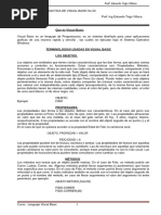 Las propiedades dan forma a los objetos; definen sus caractersticas. En el caso del perro sus propiedades seran el Peso, la Edad, color de ojos, color del pelo, etc. Las propiedades almacenan un valor que les da una medida, en el caso del gato seran 10 Kg., 3 aos, negros, blanco, respectivamente. A las propiedades se accede con el nombre del objeto seguido de un punto (.) y el nombre de la propiedad. En el caso de que se quisiera acceder a la propiedad Edad de Fido, la sentencia ser: Fido.Edad Las propiedades pueden ser de lectura, escritura o ambas. Las propiedades de lectura son aquellas que solo puede conocerse su valor pero no cambiarlo. Las de escritura son aquellas que solamente puede cambiarse su valor pero no consultarlo, aunque estas propiedades no son lo ms usual. Las propiedades de lectura/escritura pueden tanto consultarse como cambiar su valor.