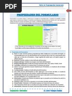 Los formularios son de vital importancia ya que representa la ventana de la aplicacin que se crear y sobre el se colocarn los controles y se escribir el cdigo en lo que se denomina Procedimiento de ventana. Tiene sus eventos, propiedades y mtodos propios y aparte contendr los procedimientos, propiedades y funciones que el programador construya. Tiene los mtodos grficos ya mencionados en las cajas de dibujo y que se vern ms adelante. Las propiedades del formulario son las siguientes: Appearance, AutoRedraw, BackColor, Enabled, Font, ForeColor, FontTransparent, Height, Left, Tag, Top, Visible y Width. BorderStyle: establece el tipo de borde que tendr el formulario, si se podr cambiar de tamao o no, etc. Caption: es el texto que aparecer en la barra de ttulo del formulario. ControlBox: determina si aparecer en la barra de ttulo el icono con el men de control. Icon: establece el cono que se mostrar en la barra de ttulo del formulario (y tambin de la aplicacin en caso de ser la ventana principal). KeyPreview: determina si los eventos de teclado (KeyUp, KeyDown y KeyPress) del formulario tienen lugar antes que los eventos de teclado de los controles. MaxButton: determina si el botn maximizar estar habilitado. MDIChild: determina si el formulario ser un formulario hijo en caso de ser una aplicacin MDI. MinButton: determina si el botn minimizar estar habilitado. Moveable: determina si se puede mover el formulario por la pantalla. Pallete: establece una imagen que contiene la paleta que se utiliza cuando la propiedad PalleteMode es Custom. PalleteMode: determina qu paleta se utiliza para los controles. Picture: inserta una imagen en el formulario. ShowInTaskbar: determina si aparecer un botn con la aplicacin en la barra de tareas de Windows. StartUpPosition: determina la posicin del formulario en la pantalla cuando aparece por primera vez. WindowState: determina si la ventana aparecer maximizada, minimizada o en tamao normal. Los mtodos del formulario son los siguientes: Move, Refresh, SetFocus y ZOrder. Hide: oculta el formulario, lo hace invisible; equivale a hacer su propiedad Visible a False. PopupMenu: muestra un men contextual. 19